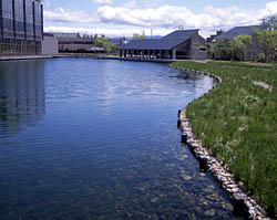 moat in front of the building was created in the image of the old outer moat around Tsurugaoka castle.