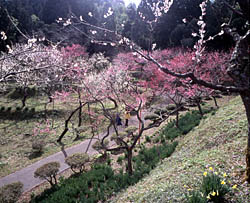 the Japanese apricot festival is held and an open air tea-ceremony is performed on the weekend when