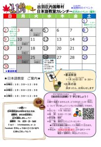 *11月の 書道教室(しょどう きょうしつ)は 11月30日です。