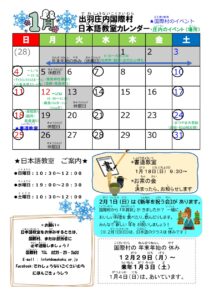 *1月の 書道教室(しょどう きょうしつ)は 1月18日です。