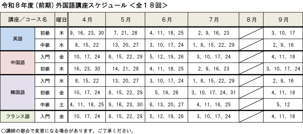 ![]() 講座スケジュール 前期【PDFファイル】 |