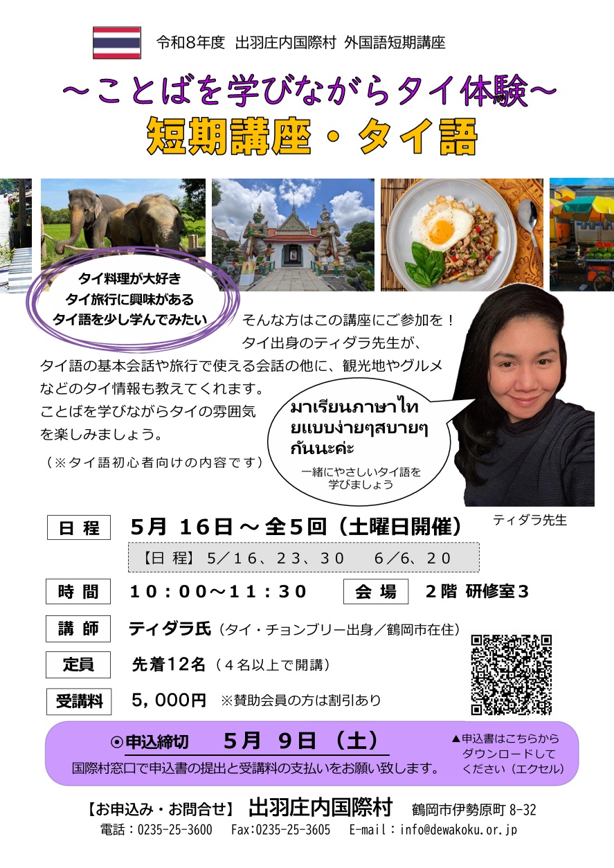 令和8年度 出羽庄内国際村 外国語短期講座