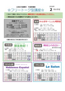 フリートーク型講座「韓国との出会い」の2月スケジュールが確定したので、