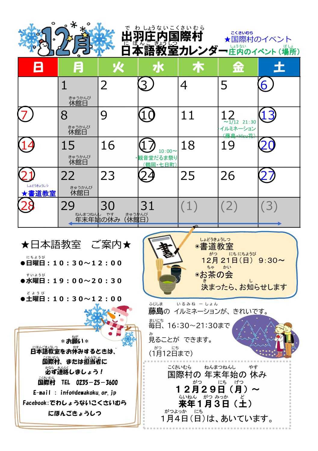 休館日:月曜日(祝日の場合は翌日)12月29日~1月3日
