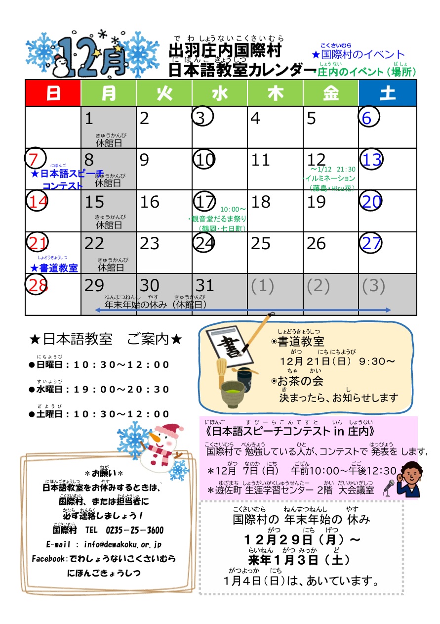 休館日:月曜日(祝日の場合は翌日)12月29日~1月3日