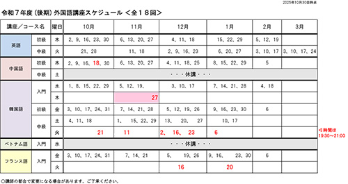 英語:初級 コース(令和7年度 後期)